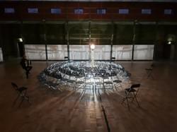 "J’ai souhaité que le public et les musiciens, soient présents dans un espace circulaire comme sur un immense tambour, car dans notre monde toute chose tend à être ronde ; La terre, les étoiles, les nids d'oiseaux eux-mêmes sont en forme de cercle... En imposant cette forme, je pousse le spectateur à mettre son focus sur l'écoute plus que sur le regard, pour l'immerger dans une expérience unique, une extase sonore." B.L.